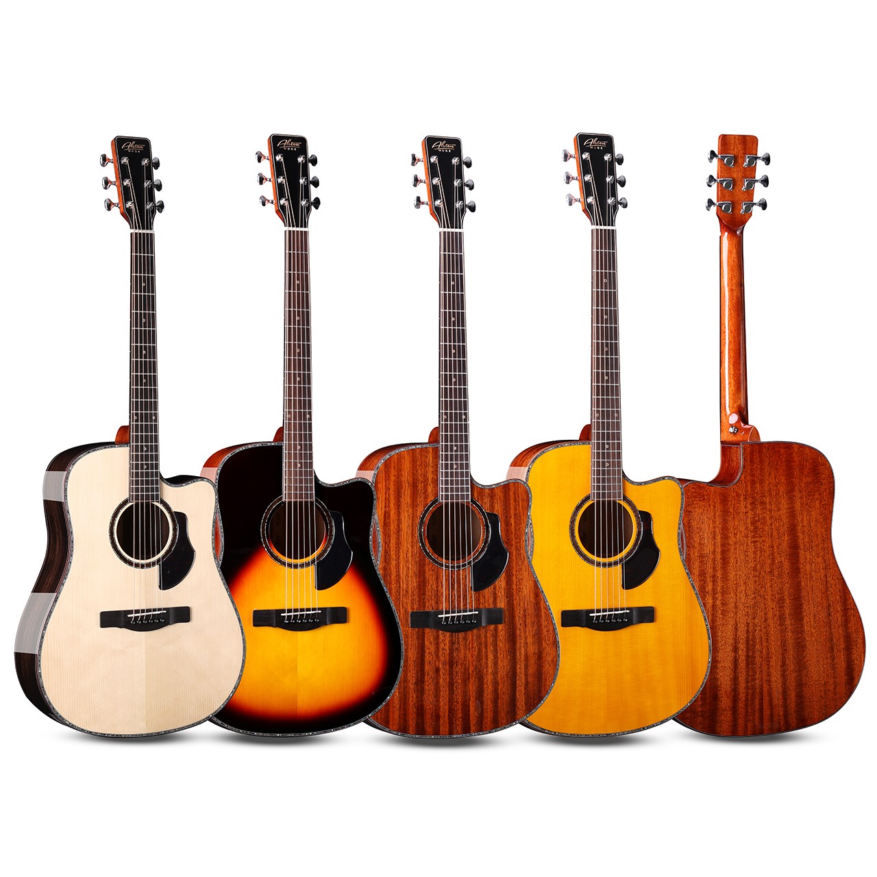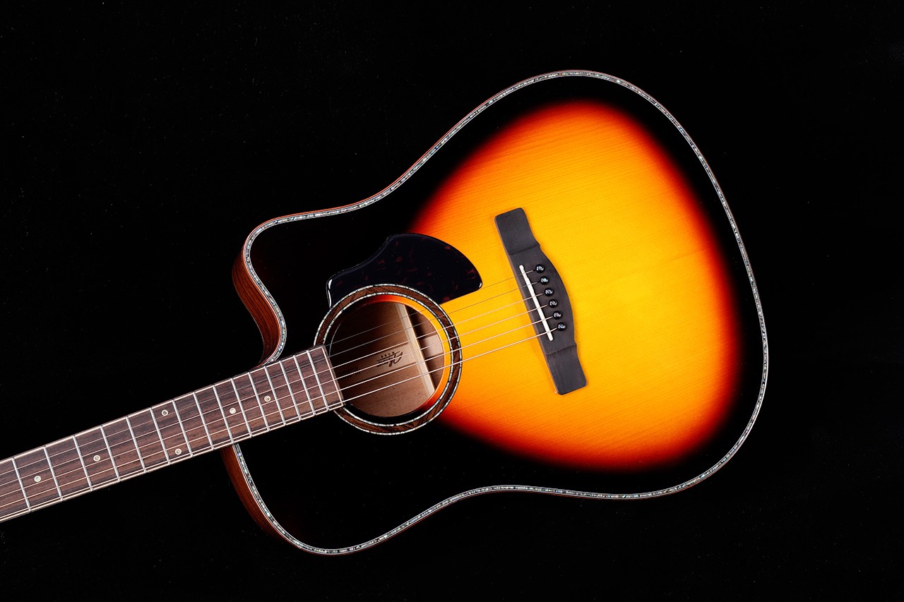 型号:AK-300D 尺寸:41寸DC桶 面板:云杉单板/桃花芯单板 背侧板:桃花芯单板 口轮花:深海鲍鱼贝 镶边:深海鲍鱼贝 弦钮:高精度鱼尾型封闭弦准 琴弦:进口磷铜镀膜高抗氧化 指板:玫瑰木 油漆:亮光
