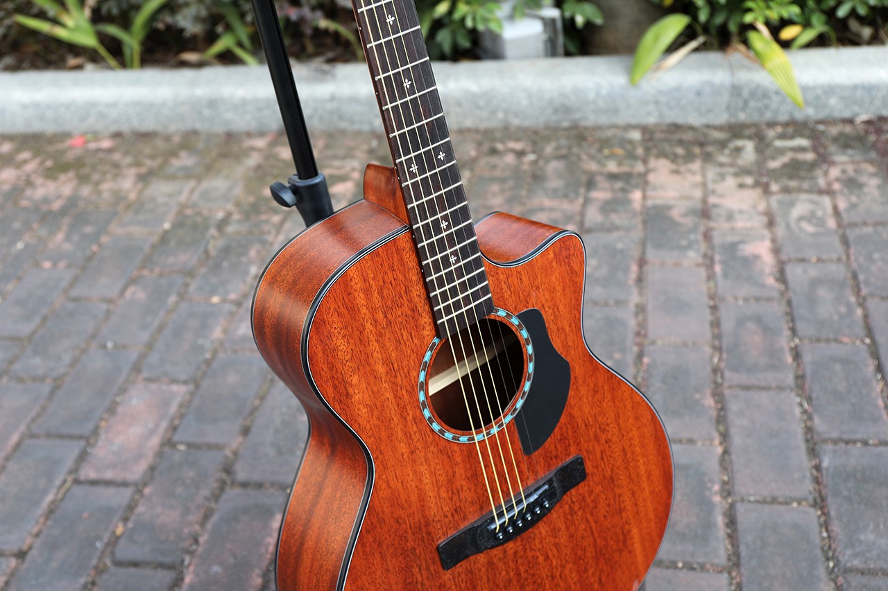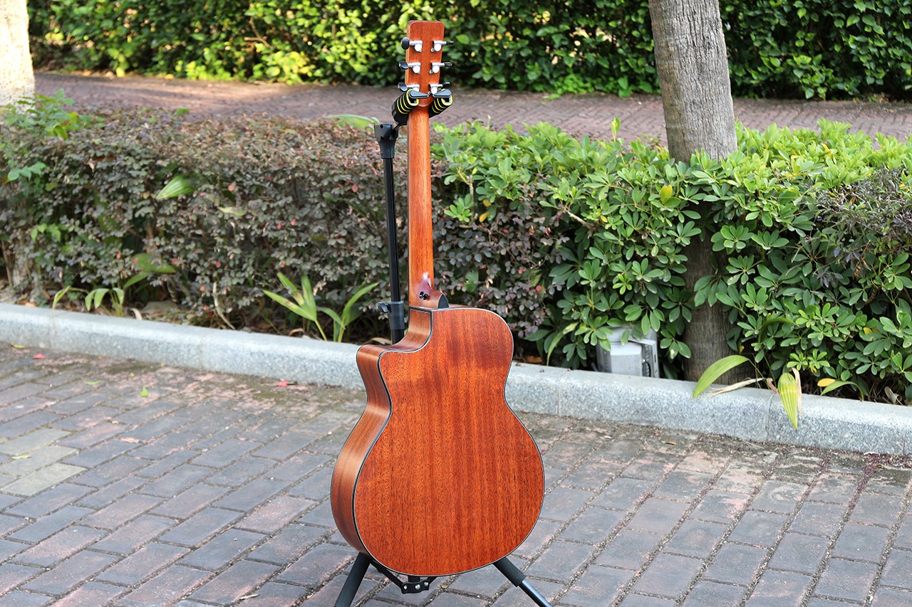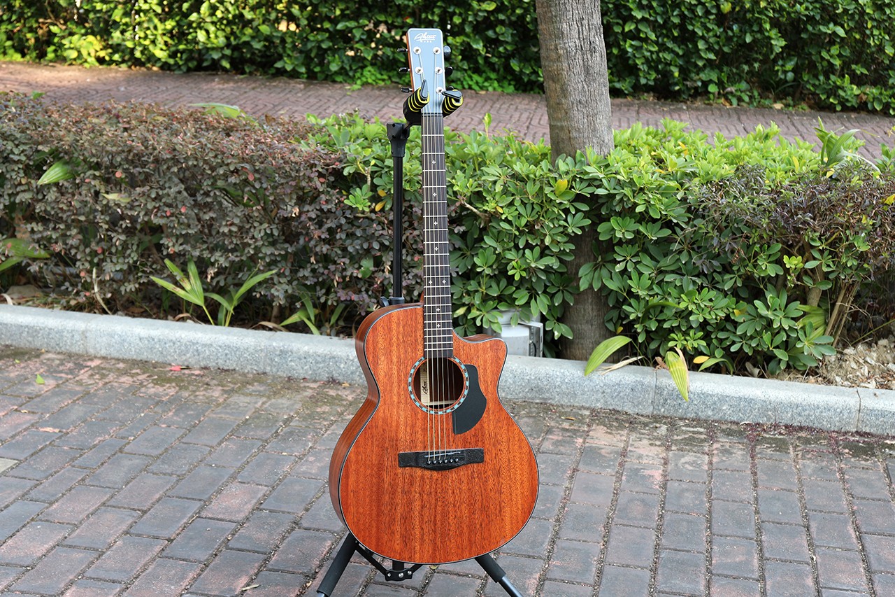 型号:SP-15G 尺寸:41" 面板:云杉&桃花芯 背侧板:桃花芯 口轮花:混搭实木 镶边:ABS圆边工艺 弦钮:全封闭仿乌木头 护板:ABS磨砂 琴头:枫木LOGO+枫木装饰线条 指板:玫瑰木 油漆:哑光