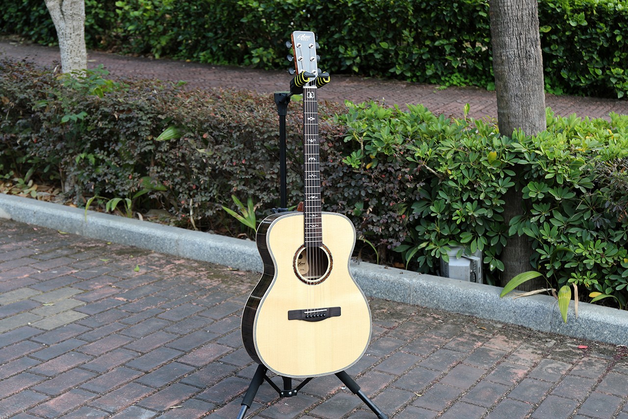 型号:D-96 尺寸:40寸 OM桶 面板:A级西提卡云杉单板 背侧板:黑檀木 口轮花:鲍鱼珍贝 镶边:实木 指板:玫瑰木(白贝镶嵌) 弦钮:19齿高精度全封闭 琴弦:达达里奥 EXP-16 油漆:亮光