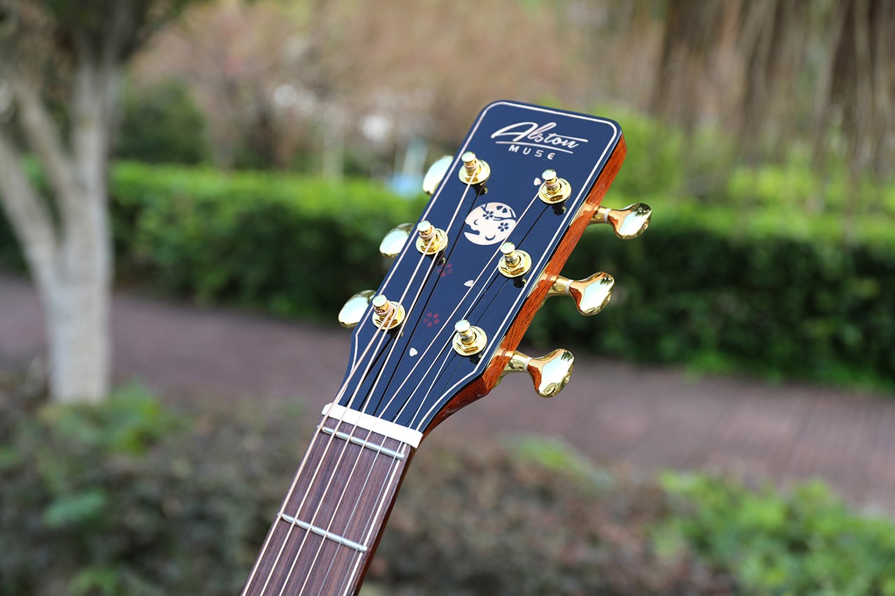 型号:DW-220 尺寸:41寸 面板:A+西提卡云杉单板 背侧板:巴西彩蝶木 口轮花:鲍鱼珍贝 弦钮:19齿镀金高精度 指板:手工镶嵌 品丝:圆头品丝(无痛0品) 臂托:实木臂托 油漆:高清亮光 梁架:手工研磨