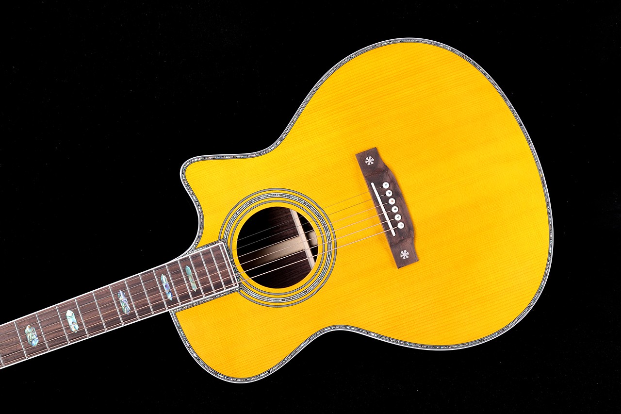 尺寸:41寸D桶&OM桶&GA桶 面板:A级云杉单板 背侧板:印度玫瑰木单板 面镶边:深海鲍鱼贝 琴颈:桃花芯 指板:玫瑰木 (镶嵌贝壳) 琴弦:磷铜镀膜-高抗氧化 琴钮:开放式高精度金色弦扭 琴枕:牛骨 油漆:高清亮光