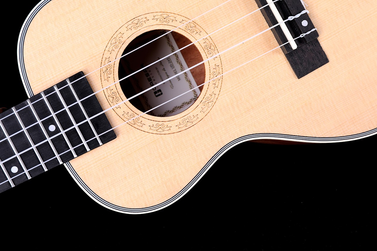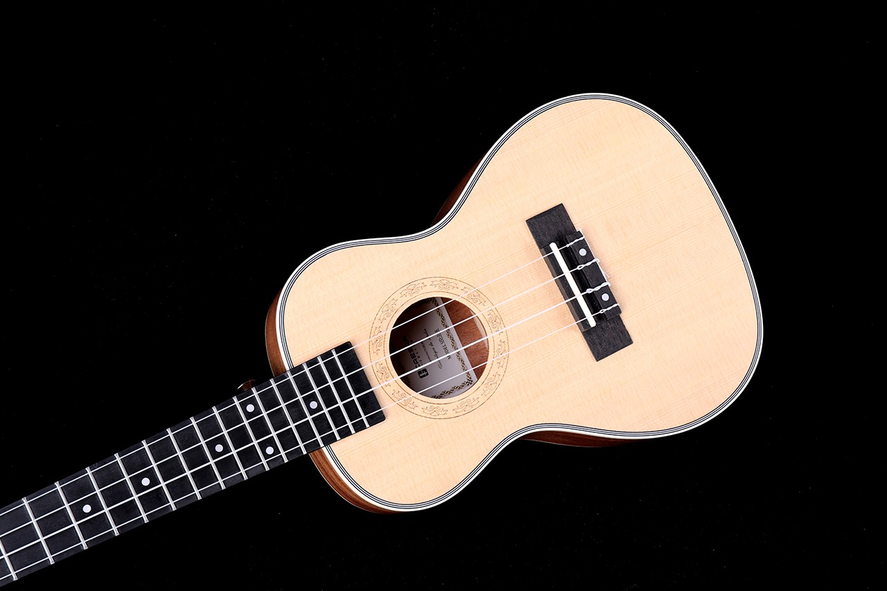型号:U-24S 尺寸:23寸 面板:云杉单板 背侧板:桃花芯 口轮花:激光雕刻 镶边:ABS+三线 弦钮:全封闭 指板:HPL 油漆:哑光