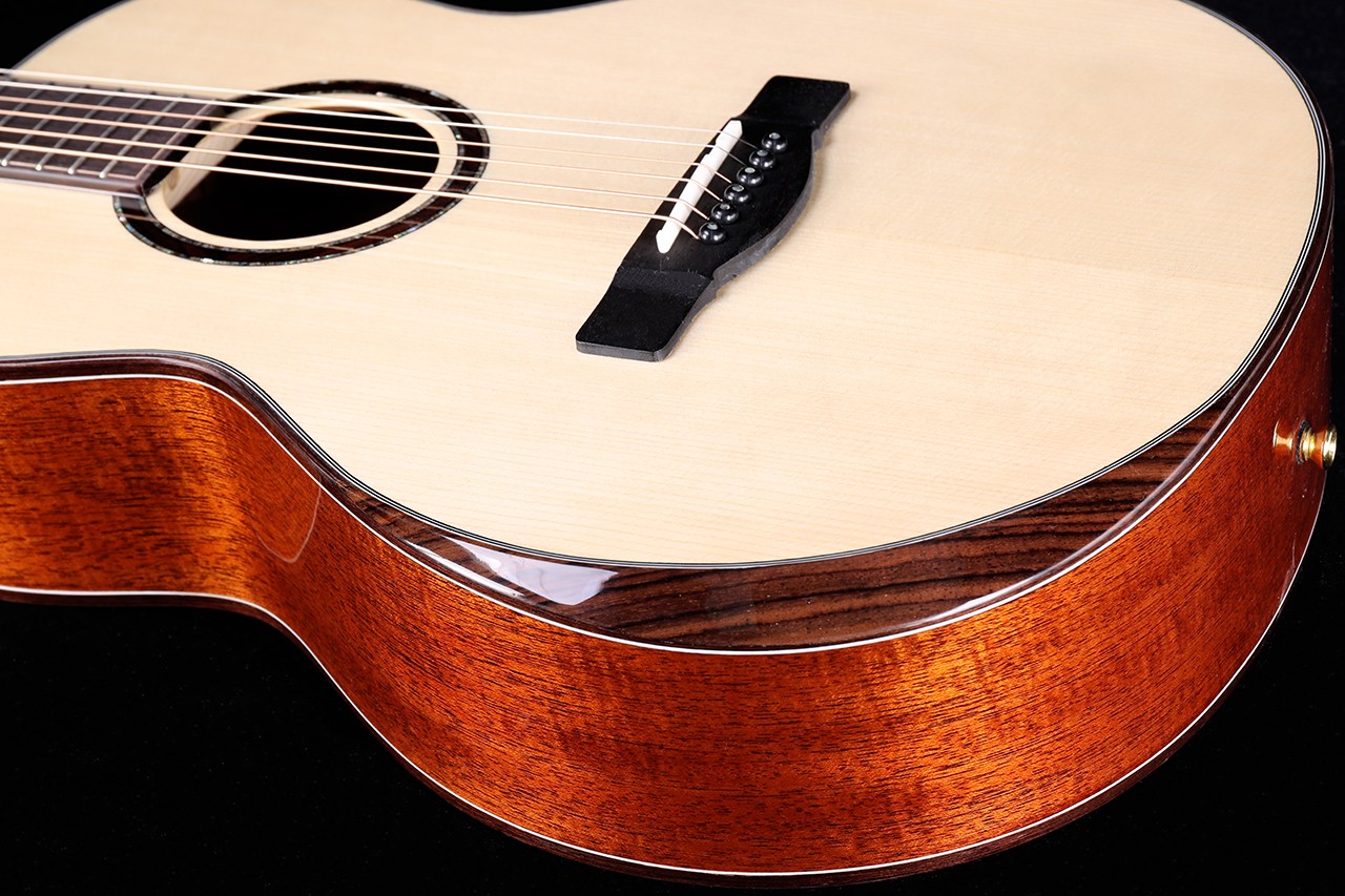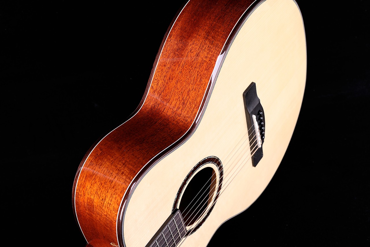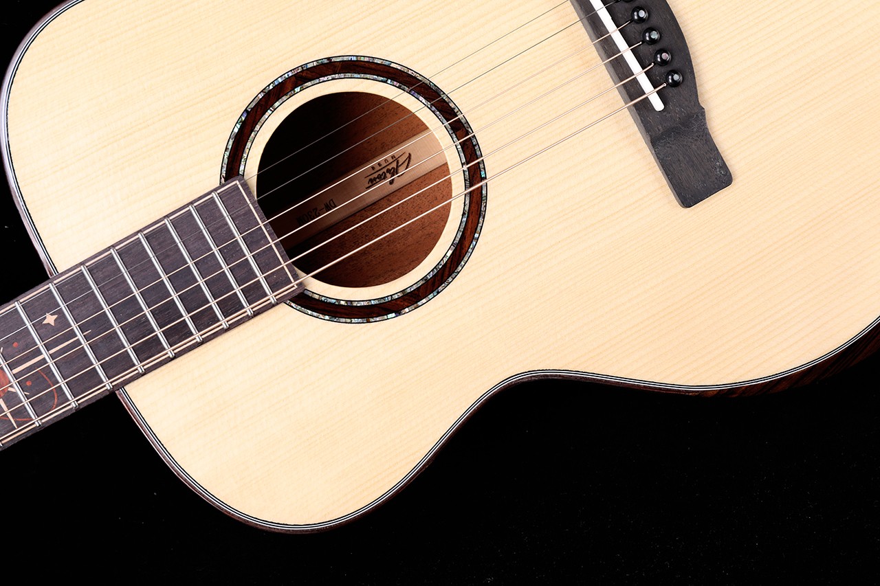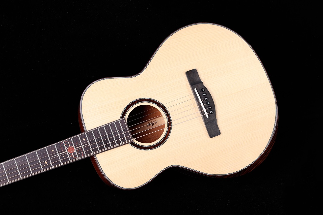 型号:DW-230M 尺寸:36寸 面板:A+欧洲云杉单板 背侧板:刚果虎纹桃花芯 口轮花:鲍鱼珍贝 弦钮:1:19镀金封闭式 指板:手工镶嵌(星瀚) 品丝:圆头品丝(无痛0品) 琴弦:磷铜镀膜 臂托:实木臂托 油漆:高清亮光 梁架:手工研磨