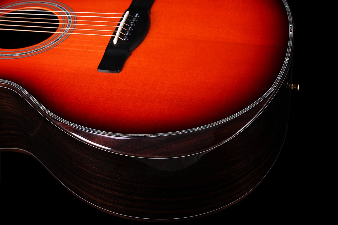 尺寸:41寸GA桶-尖缺角 面板:A级云杉单板 背侧板:印度玫瑰木单板 面镶边:深海鲍鱼贝 琴颈:奥古曼 指板:玫瑰木 琴弦:磷铜镀膜-高抗氧化 琴钮:鱼尾形镀金全封闭 琴枕:牛骨 油漆:高清亮光