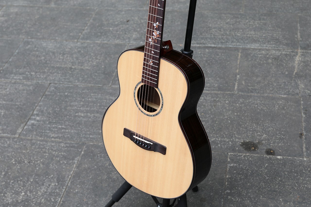 型号:DS-63M 尺寸:36寸 面板:西提卡云杉单板 背侧板:玫瑰木合板 口轮花:鲍鱼贝壳 镶边:实木 弦钮:镀铬全封闭 指板:玫瑰木实木镶嵌 油漆:亮光 臂托:实木臂托